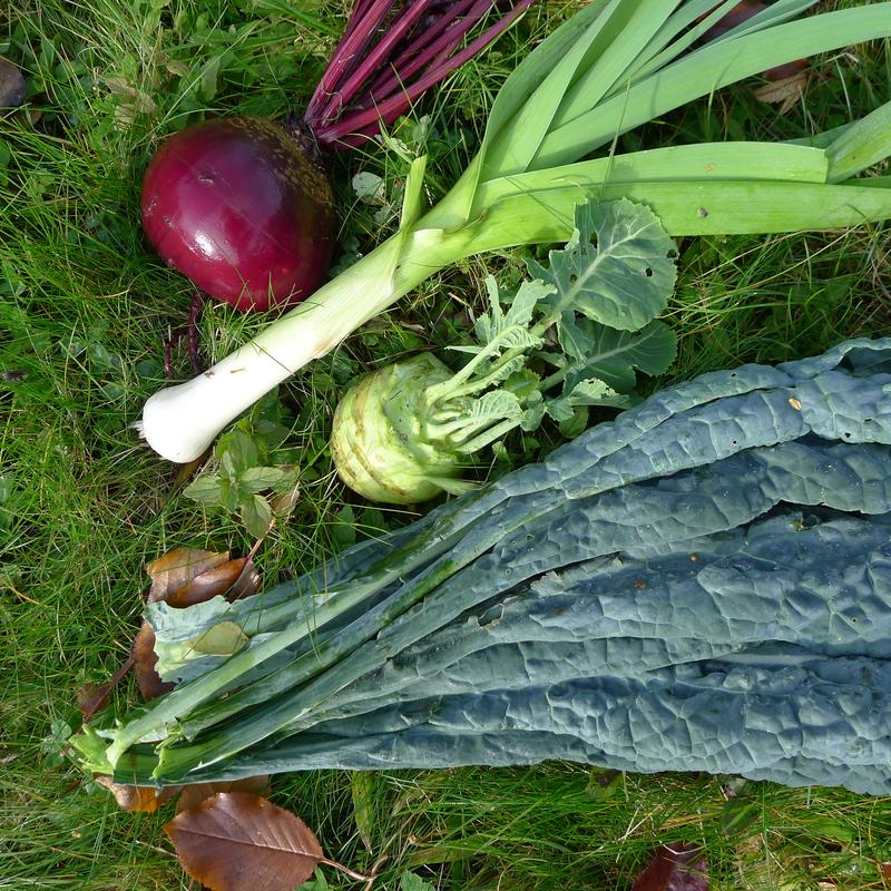 Sníh roztál a tak mohu sklidit pekingské zelí, kadeřávek, růžičkovou kapustu i trochu brokolice z vyvýšených záhonů. Ze skleníku podzimní pór, cibulovou nať a petrželku.