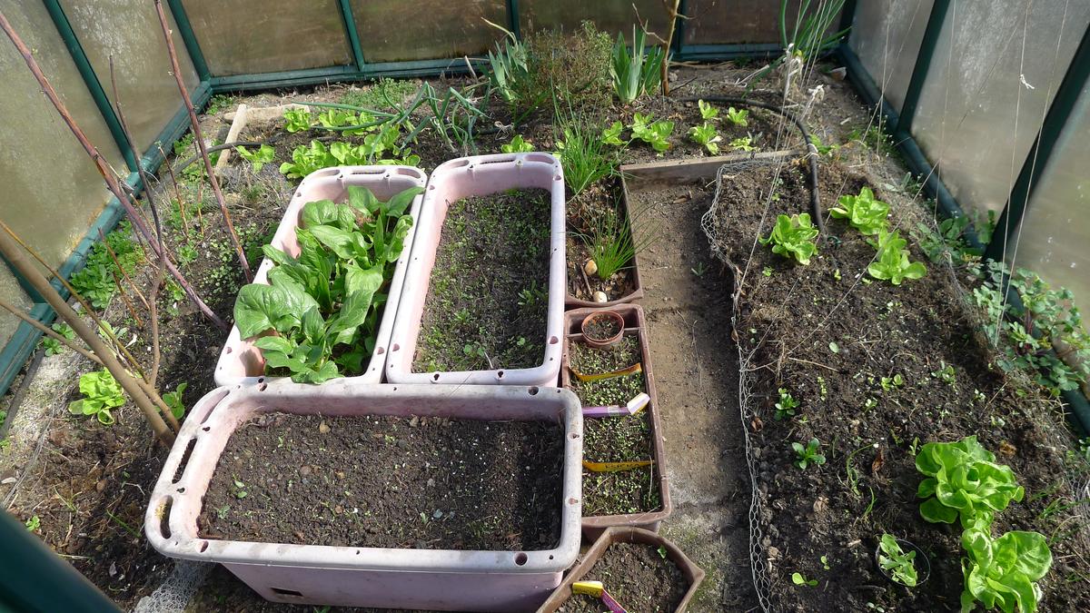 do vyvýšených záhonů vysadila kedlubny a květák, vysela ředkvičky, špenát, hrách a mrkev, do truhlíků ve skleníku pro předpěstování sazeniček košťáloviny, pórek, salát a mangold.